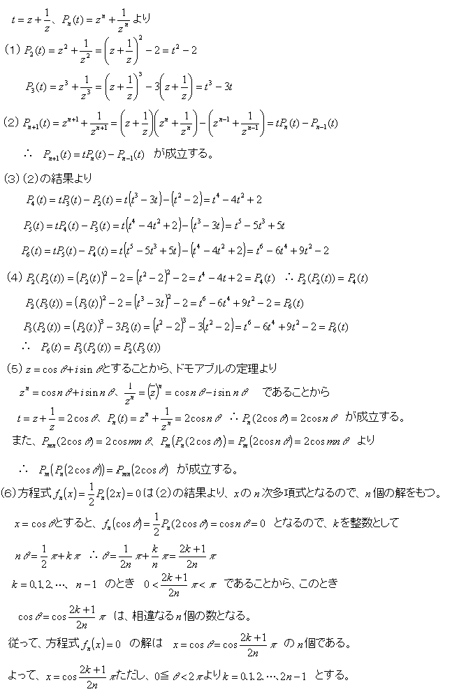 =z^(n+1)+z^(n-1)+(1/z)^(n-1)+(1/z)^(n+1)= Pn+1(t)+Pn-1(t)よりPn+1(t)=tPn(t)-Pn-1(t)