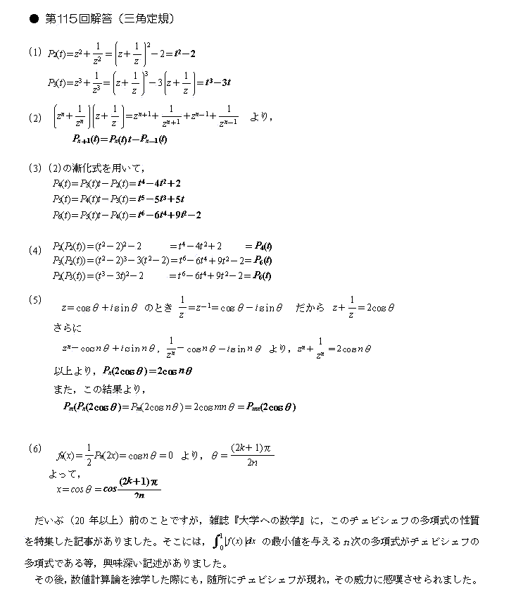 この問題は 第71回の応募問題「余弦のn倍角」と関連しています。