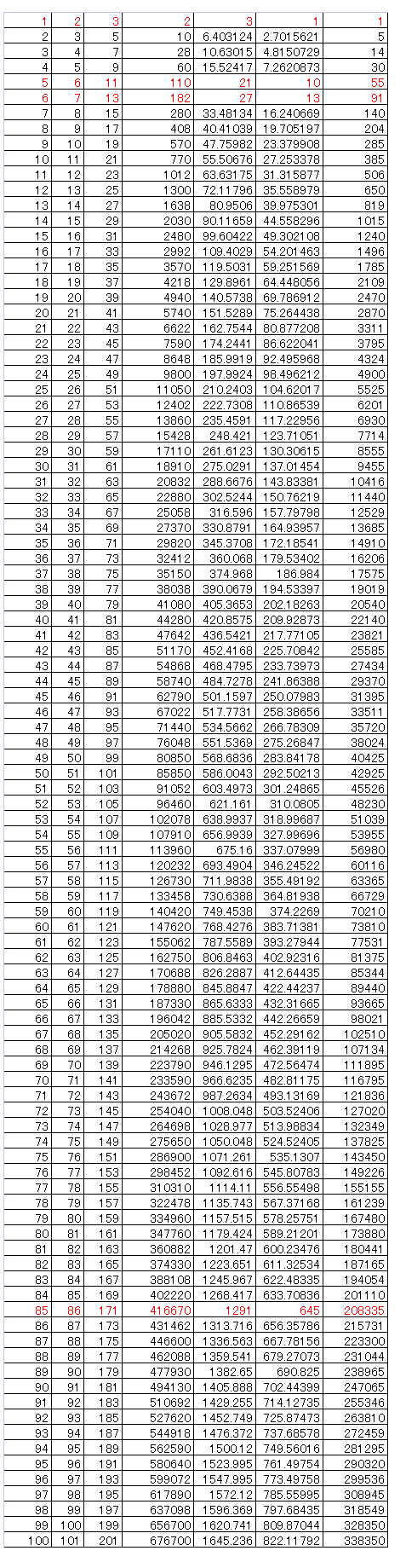というわけで、とりあえず、エクセルでもって sqrt(X^3-9X+81)(X=6m+3、m=1,2,3,-----)をバーっとm=1000,まで計算してみましたら、整数になるのが、m=1,5,6,85