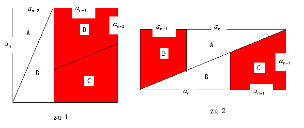 (一辺がa(n)とa(n+1)の正方形を横に並べて、長方形二つに区切りなおした)より