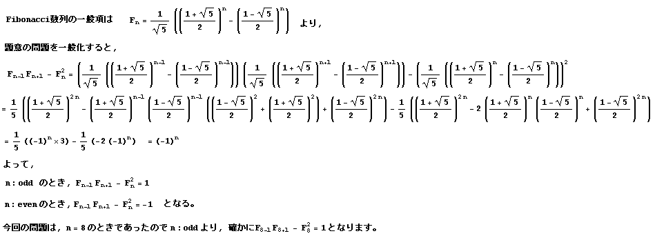 今回はFibonacci数列の有名な性質の問題でしたね。