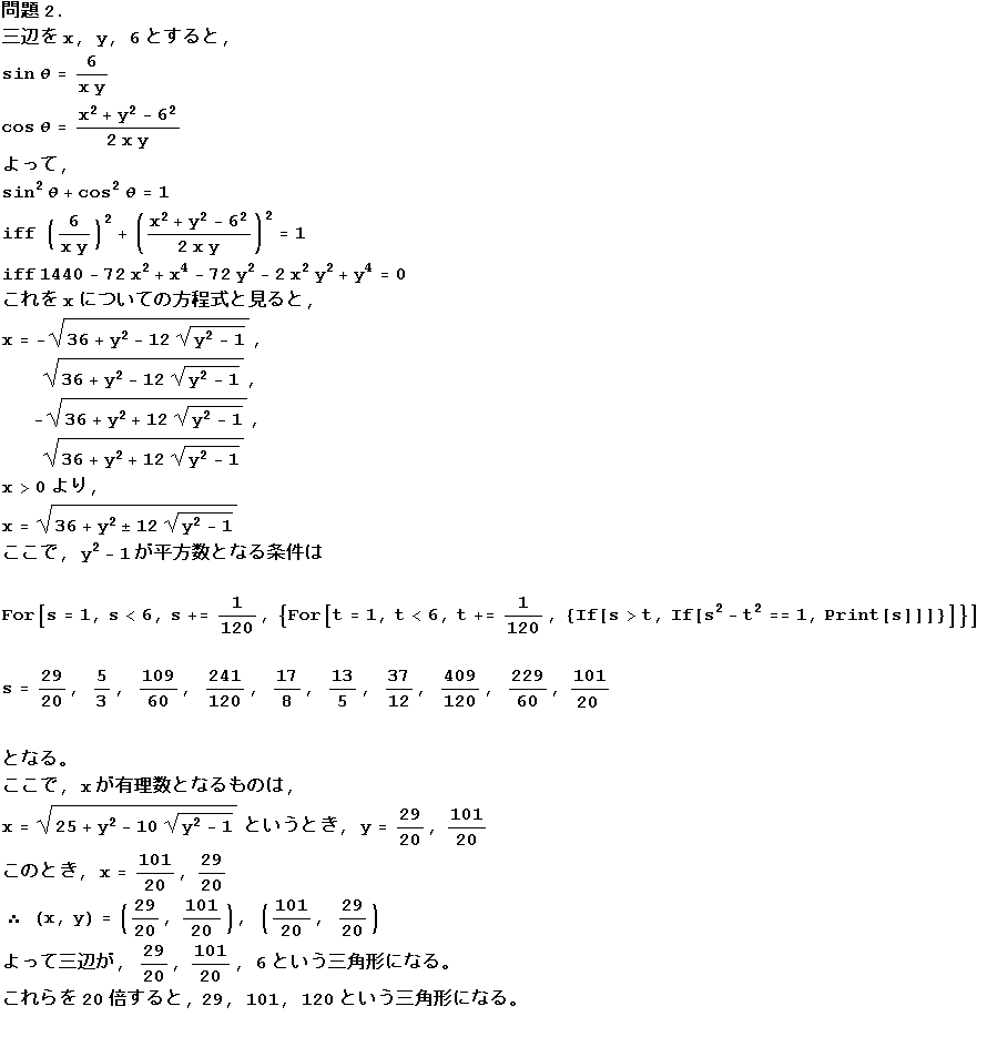 第2問の三角形の1つ・・・辺の長さ120、101、29