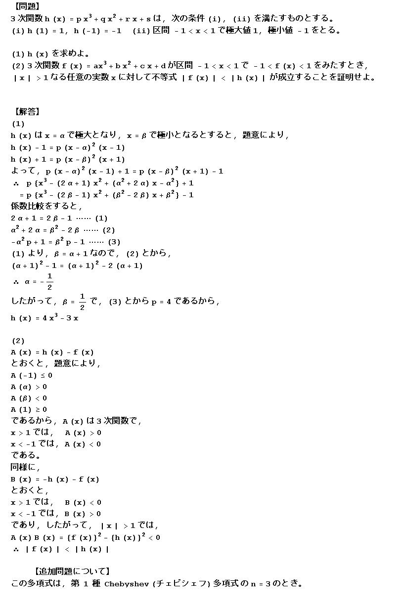 T3(x)ということでしょうか?チェビシェフの多項式については、以前にここの問題(第71回、第115回)でちょっとだけ勉強した覚えがあります。