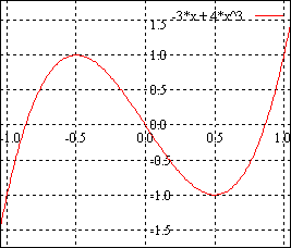 <コメント:名前のついた多項式と言っても、それほど知りませんが、x=cosθとしてみるとf(x)=cos3θとなりますから、3次のチェビシェフの多項式
