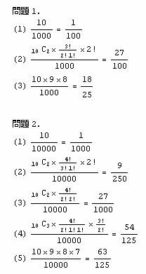 (1) 問1の(1)と同様に10通り