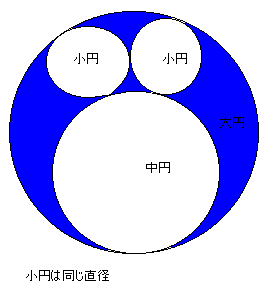 だだし、中円と小円は互いに外接、中円と大円は内接、2つの小円と大円は内接している。