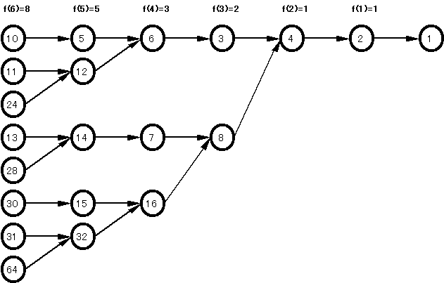 即ち、f(3)=2、f(4)=3、f(5)=5、f(6)=8 となる。