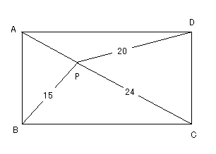 図のような長方形ABCDの周および内部の点Pから各頂点に至る長さをBP=15,CP=24,DP=20