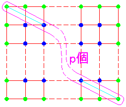 そして、長方形の内部の格子点数=a、周上の格子点数=b、対角線上にある格子点数=p個とします。