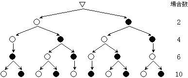 1試合経過のときは、○か●の2通りです。2試合経過のときは、○○か○●か●○か●●の4通りです。