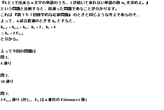 前回の問題のときは体調をくずしてました. 第155回の解答を送ります:
