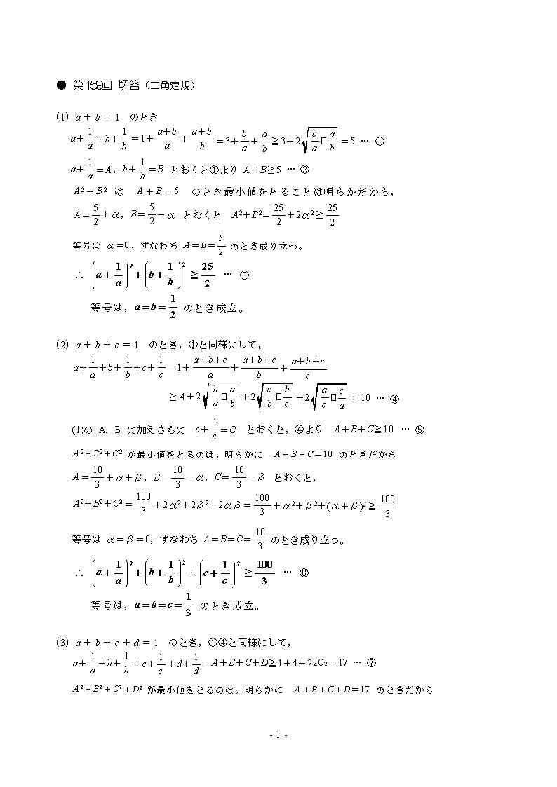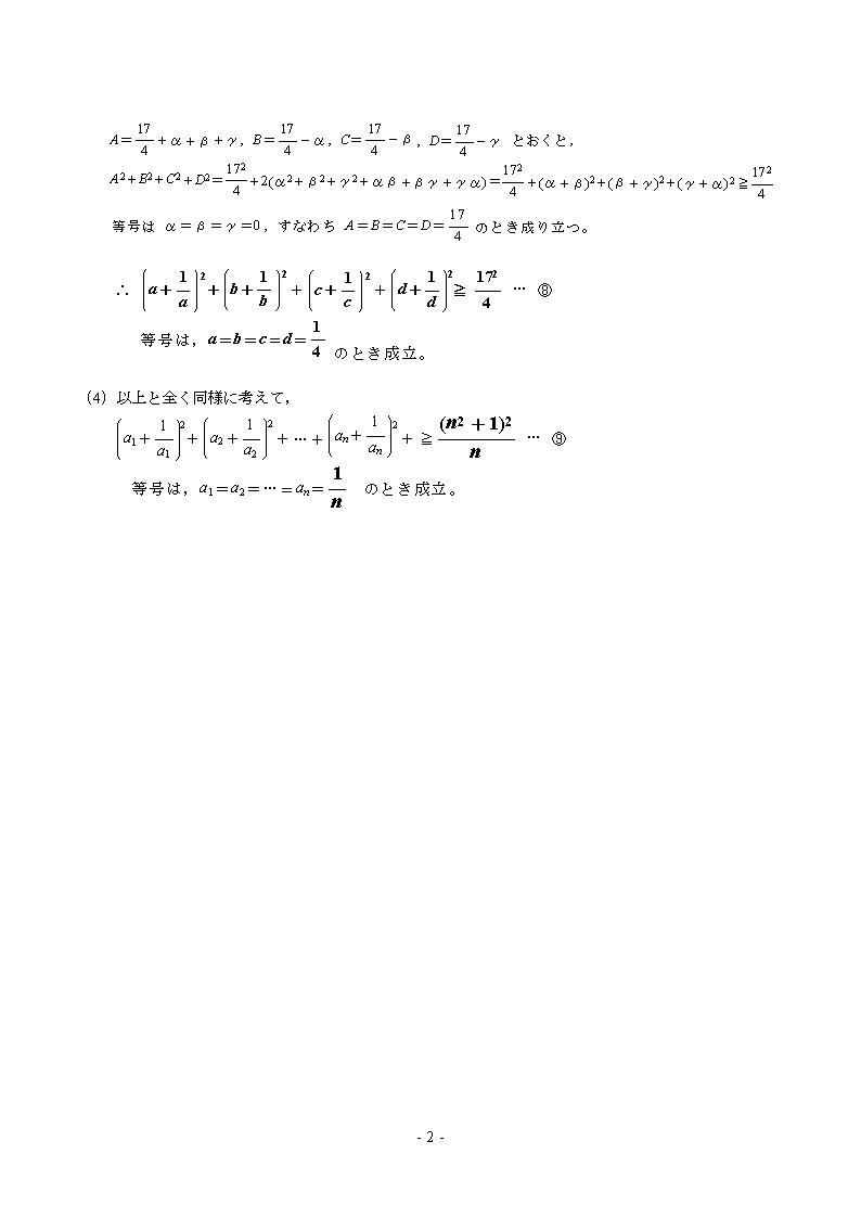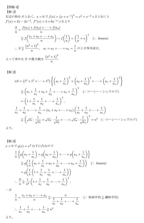 (左辺)>= n f(1/n) = (n^2+1)^2/n. (問題3はn=4の場合だから,289/4.)である.