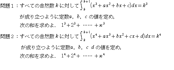 Σ(kの5乗)、Σ(kの6乗)、Σ(kの7乗)、Σ(kの8乗)、Σ(kの9 乗)、Σ(kの10乗) このあたりまで知っていますが、公式とは言いませんけど。>