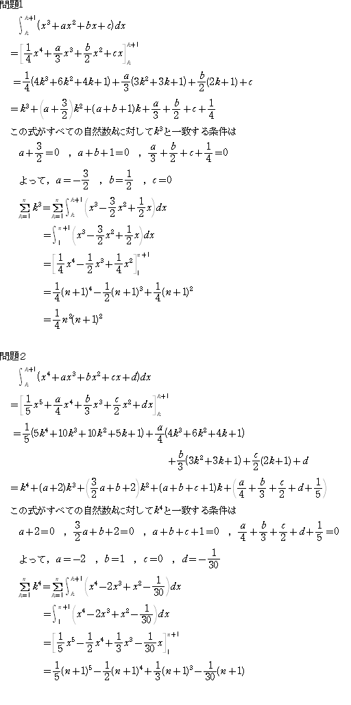 14+24+・・・+n4=n(n+1)(2n+1)(3n2+3n-1)/30 ・・・(答)
