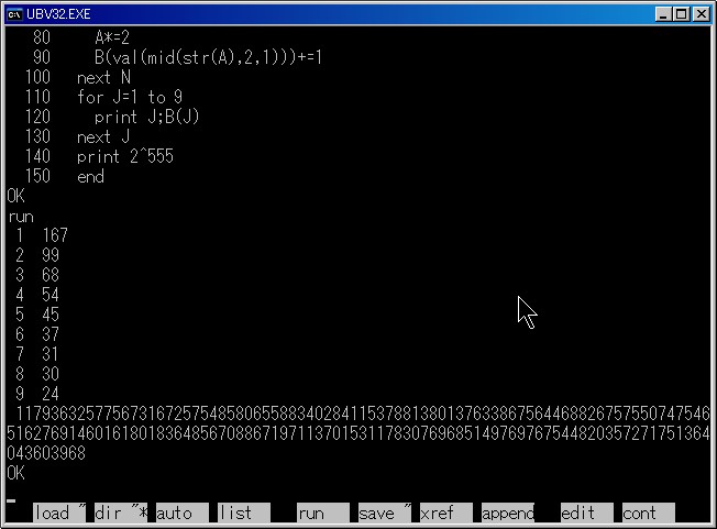 いつもおせわになっています。kiyo(清川)です。 十進ベ−シック(1000桁モ−ド)