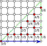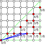 さて,b/a,d/c の間にある (b+d)/(a+c) の分母 a+c が n 以下ならば,