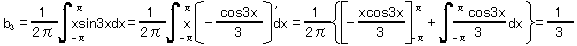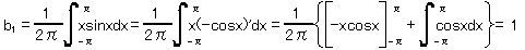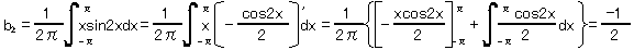 = 1/2 * ∫[-π〜π] {x * sin(nx)} dx