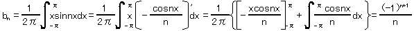 = - π/2n * 2 * (-1)^n - 1/2 * [- sin(nx)/n^2][-π〜π]