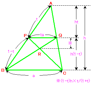 PQ=ta △PQRの高さh=t(1−t)b/(1+t)