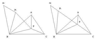 ヒント:PA+PB+PCと同じ長さの折れ線を作るように、頂点Bを中心にして、三角形APB