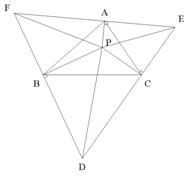 「各頂点を通りPA、PB、PCにそれぞれ垂直な3直線の交点からできる三角形が正三角形であることを証明せよ」