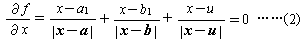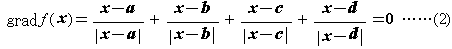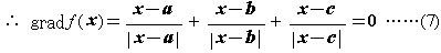 この解は,最小値を与えるxの性格は与えているが,平面の場合の <図2> のような,点の位置を決定する方法を与えていない。