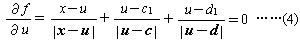 f (x,u)=| x−a | +| x−b | +| x−u | +| u−c | +| u−d | …(1)