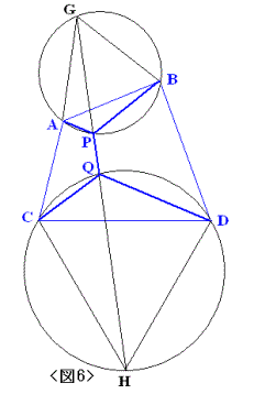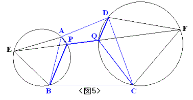 (ウ) 直線EFとそれぞれの外接円の交点が求める2点P,Qである。 <図5>