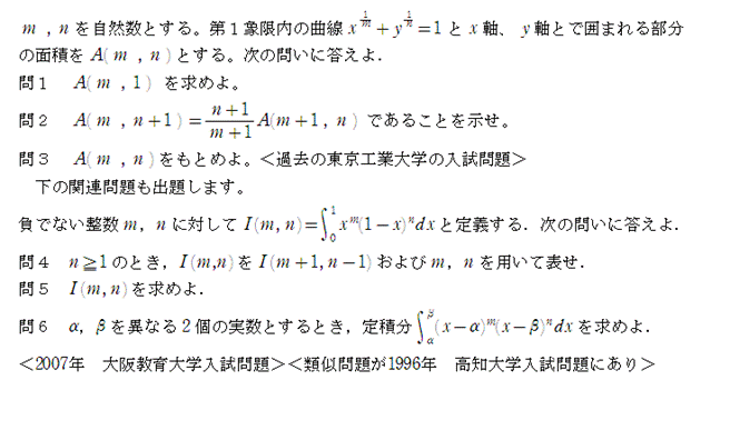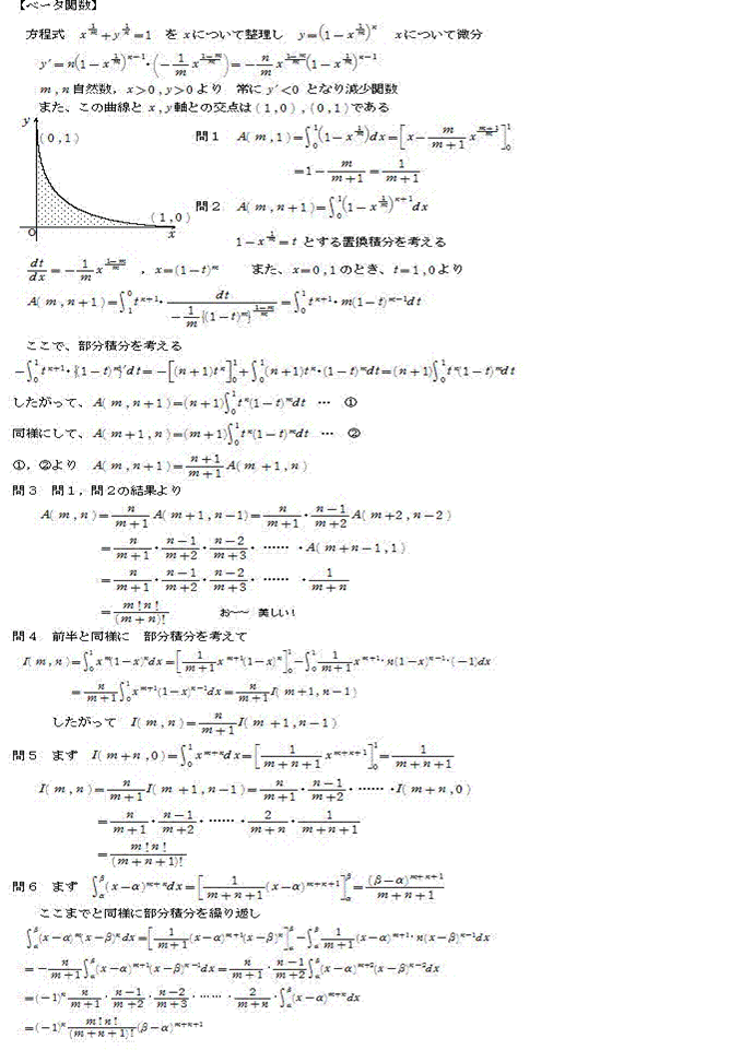 皆さん、過去の大学入試問題集(数研出版)を見ていると、べータ関数に関するものがあります。