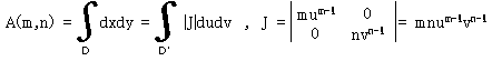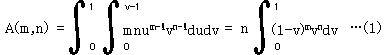 A(m,n) = ∫[0<=x<=1]{(1 - x^(1/m))^n}dx