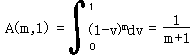 A(m,n) = m * ∫[0<=t<=1]{t^(m-1) * (1-t)^n}dt