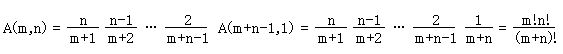 A(m,n) = n/(m+1) * A(m+1,n-1) = {n(n-1)}/{(m+1)(m+2)}
