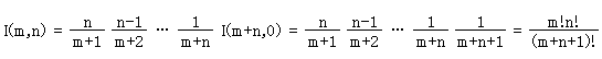 I(m,n) = {n*(n-1)*...*2}/{(m+1)*(m+2)*...*(m+n)} * 1/(m+n+1)