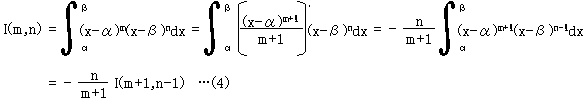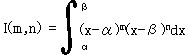 I = ∫[α<=x<=β]{(x-α)^m * (x-β)^n}dx