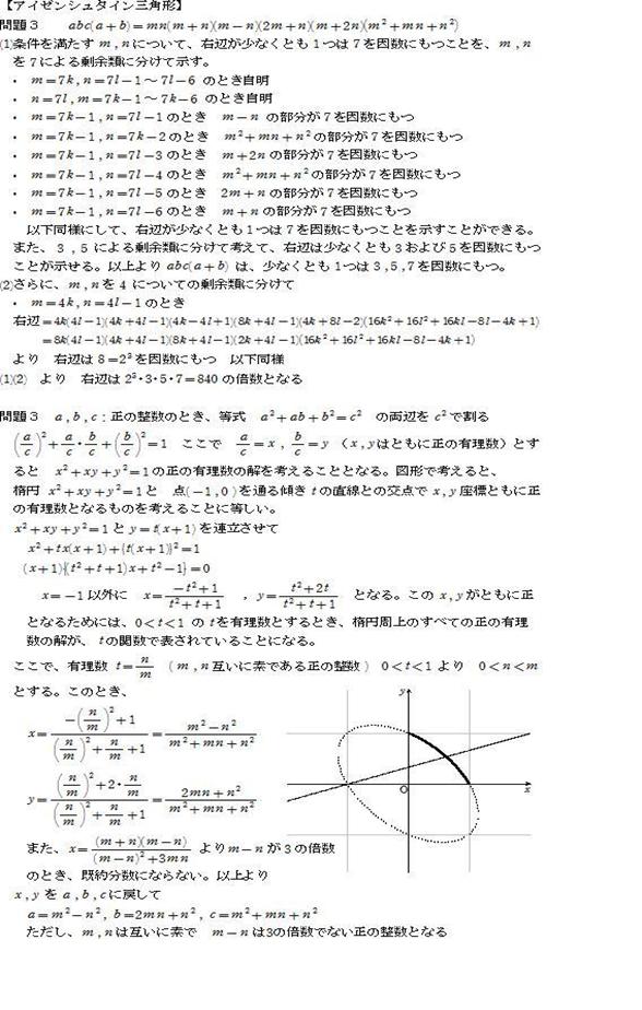 以下において,c^2 = a^2 + b^2 + ab の整数解,とありますが,