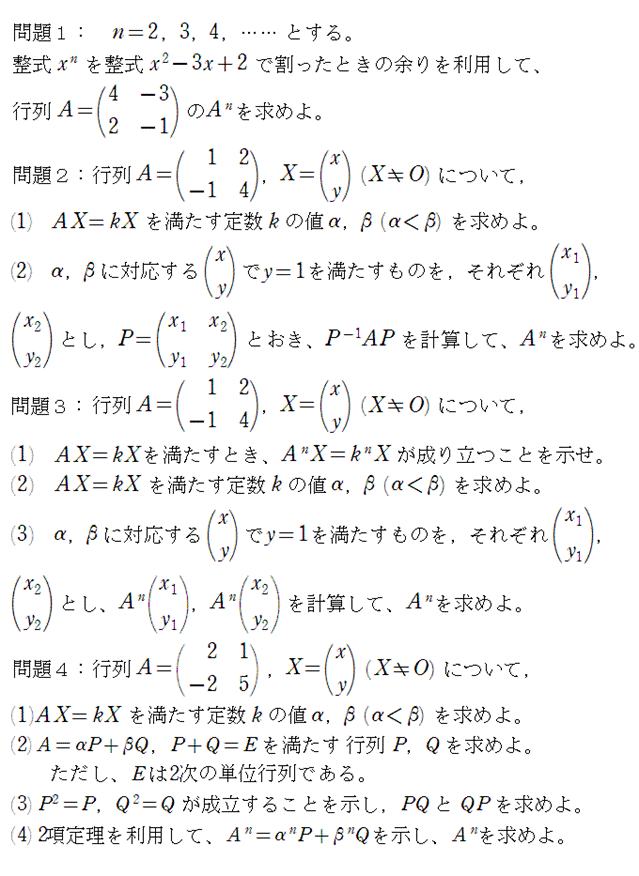 皆さん、入試問題に行列Aのn乗を求める問題があります。まとめてみました。