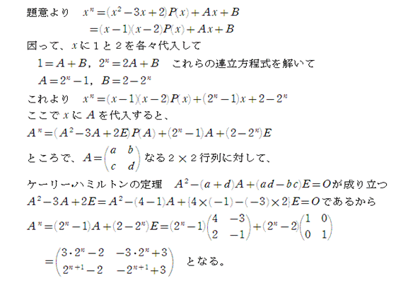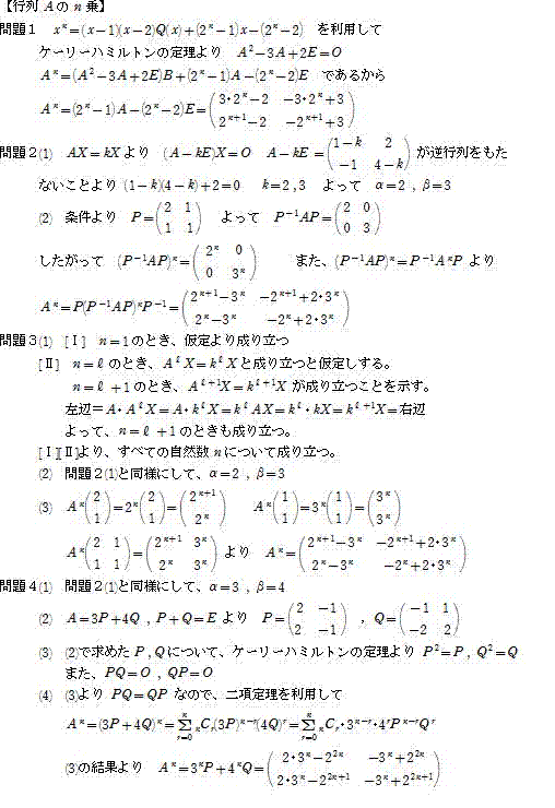 ・問題1:は,ケーリー・ハミルトンの定理の応用。