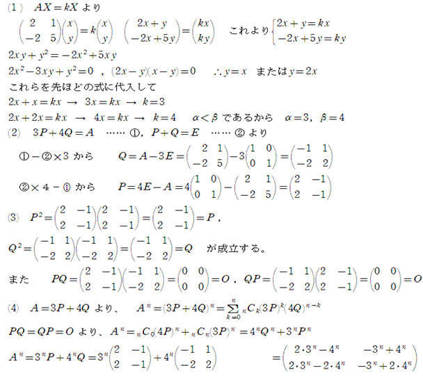 PQ = QP より,A^n = (3P + 4Q)^n の計算では積の交換則がいえて,通常の二項定理が使え,