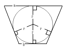 題意より等脚台形の上底および下底各々の距離差の半分と等脚台形の高さ(内接円の直径と等しい)を2辺とし、斜辺の長さは図よりは上底および下底の各々半分の長さを加えた直角三角形であるから、三平方の定理を使い