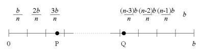 以上をふまえて,図2のように長さbの線分をn等分し,各区間の代表値を左から