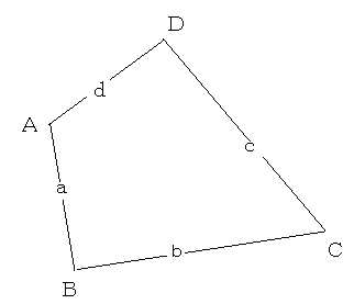 4辺の長さがa,b,c,dである凸四角形ABCDの面積の最大値を求めよ。