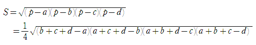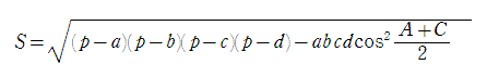 S = sqrt((s - a)(s - b)(s - c)(s - d) - abcd * (1 + cos(x + y))/2)