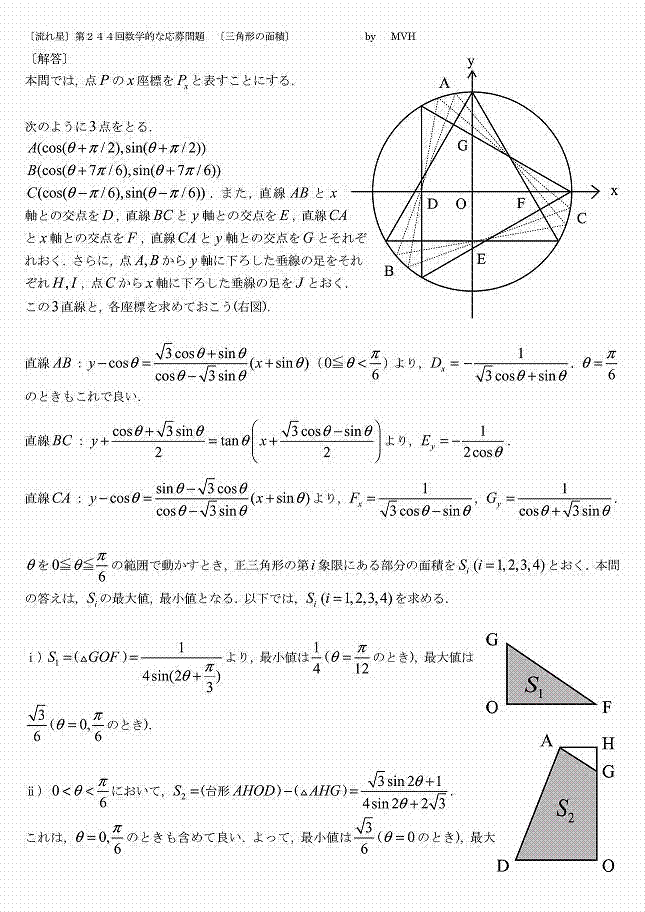 重なった頂点側が最大で...その反対側が最小になりそう...^^;←ここの考証わから