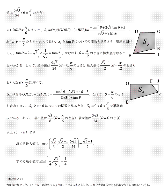 とします。ただし,対称性より,0 <= θ <= 2π/3