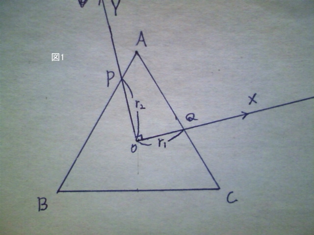 交点P,Qを図1のように定め、長さOP,OQの内短い方をr[1]、長い方をr[2]とする。