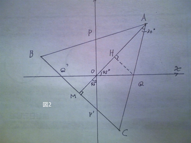 ここで,∠P'OP = ∠AOQ = θ = 回転角,OA = 1 > OP' = 1/sqrt(3) で,