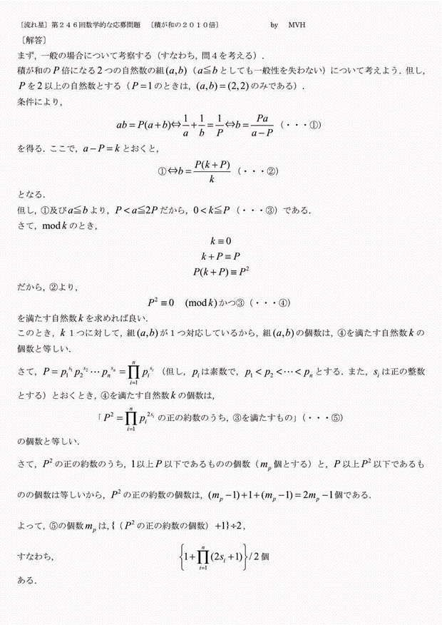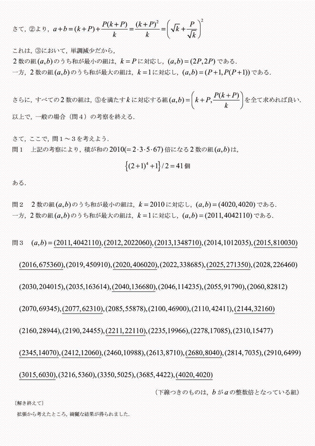 問4:さらに、積が和のP倍として、考察があれば、書いてください。