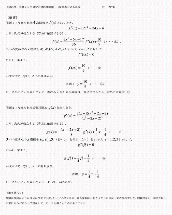 特に,二つの異なる変曲点 (α,f(α)),(β,f(β)) を通る曲線は直線なので,