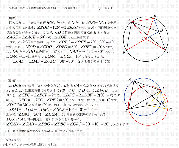 <「uchinyan」からの紹介:なお,私が以前にWebで見つけた解法集をご参考までにお送りしておきます。実は,私はまだ目を通してはいないのですが,