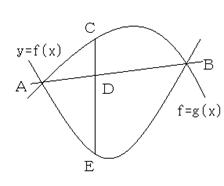 y=f(x)、y=g(x)とする。図でCDEはy軸に平行な線分とする